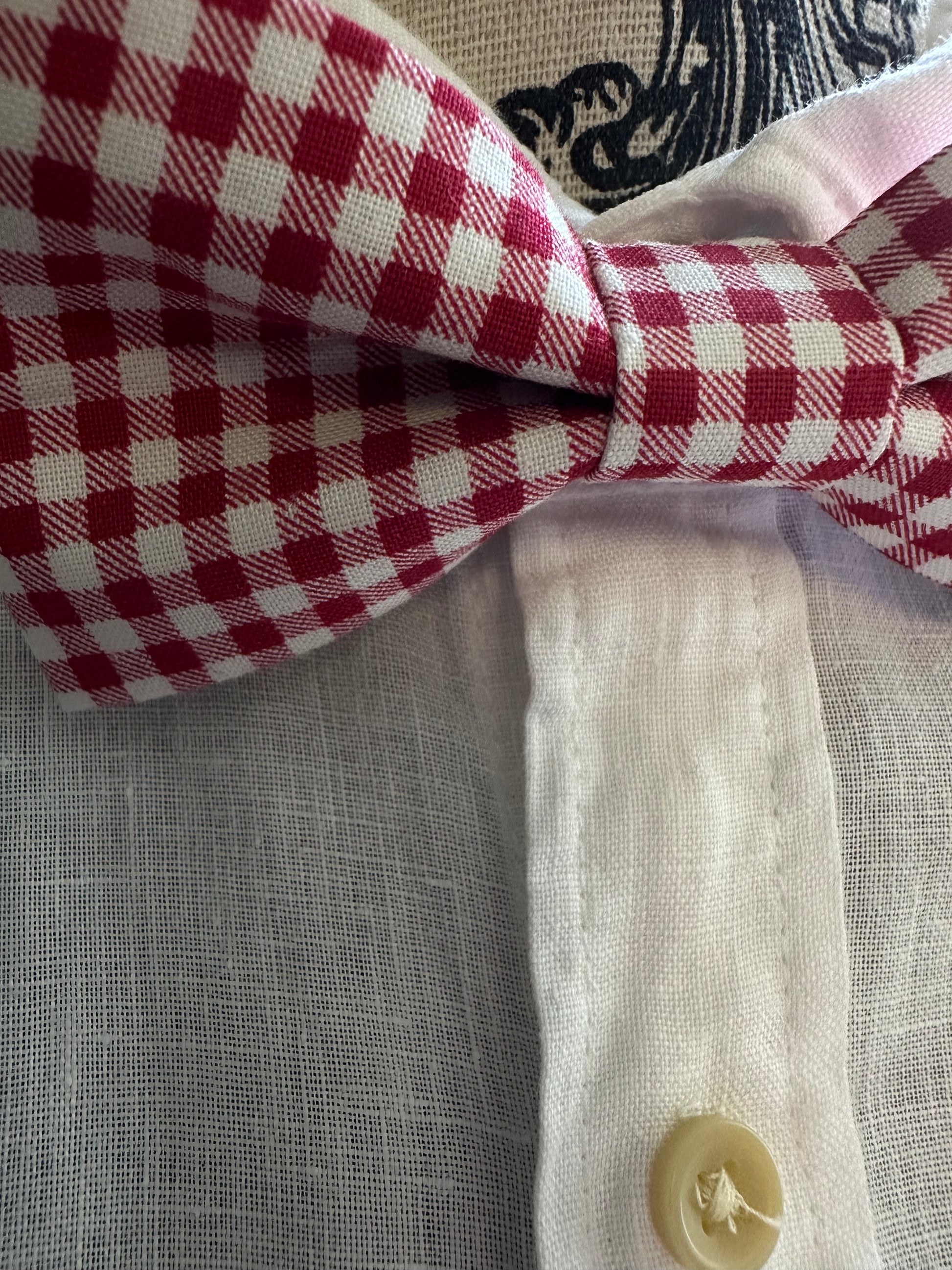 Red White Check Plain Bow Tie, Pre-Tied on Adjustable Strap